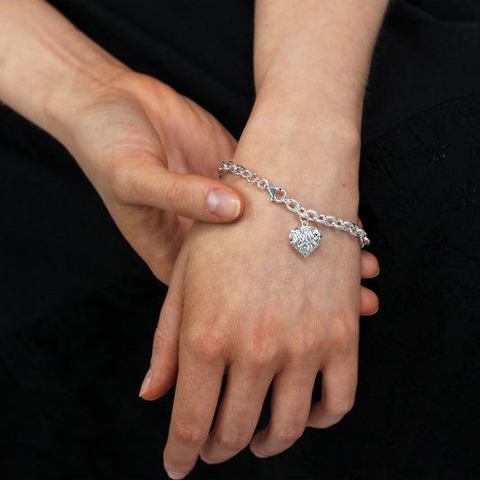 Regular price£0.00Heavy Sterling Silver Charm Bracelet with Diamond Cut Puffed Heart Charm