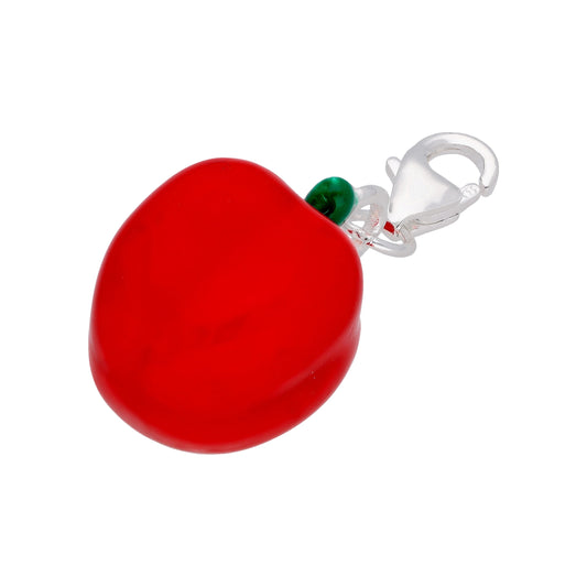 Large Sterling Silver Red Enamel Apple Clip on Charm