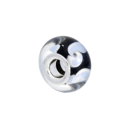 Sterling Silver Blue White & Black Swirled Glass Bead Charm