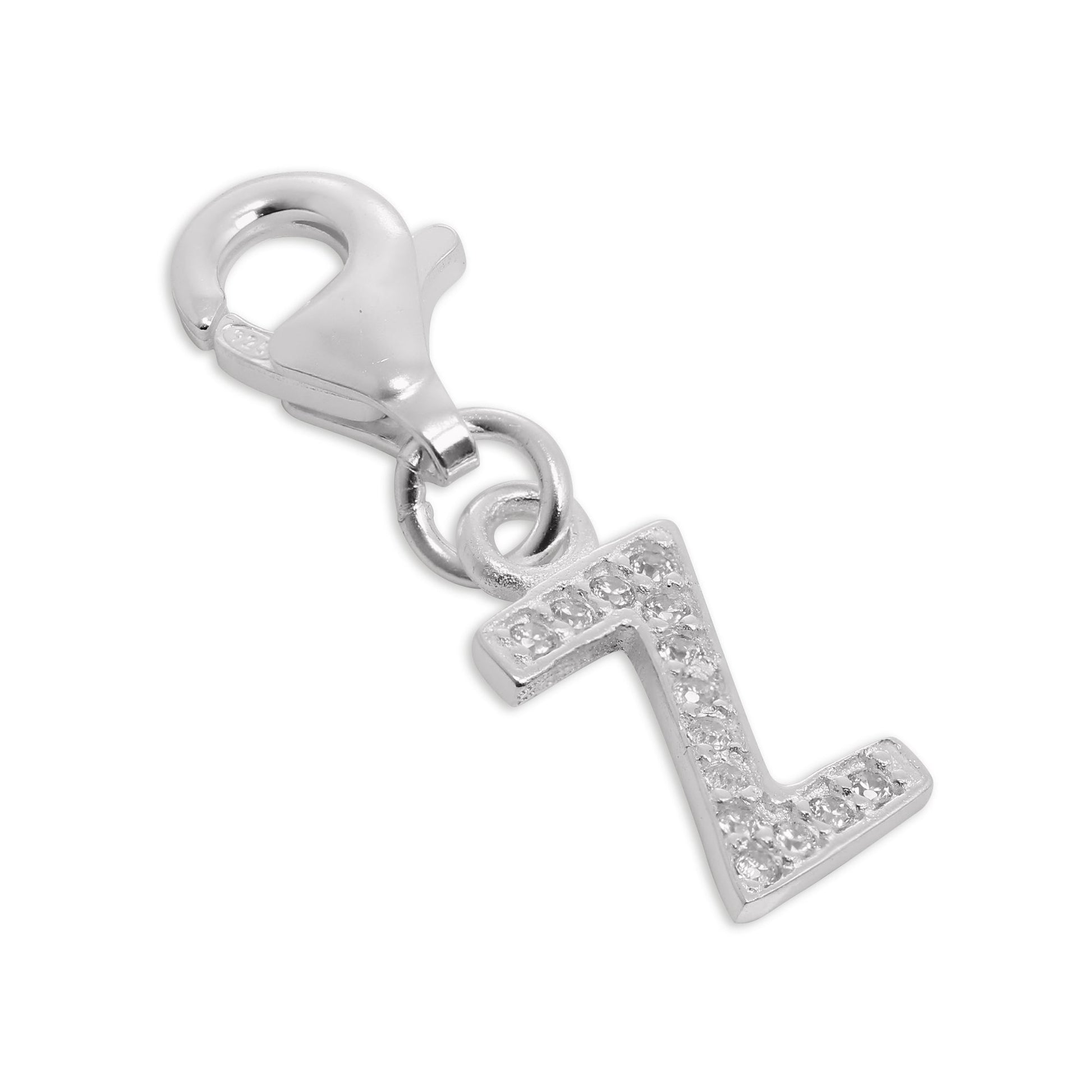 Small Sterling Silver & CZ Crystal Initial Letter Clip-on Charm A - Z
