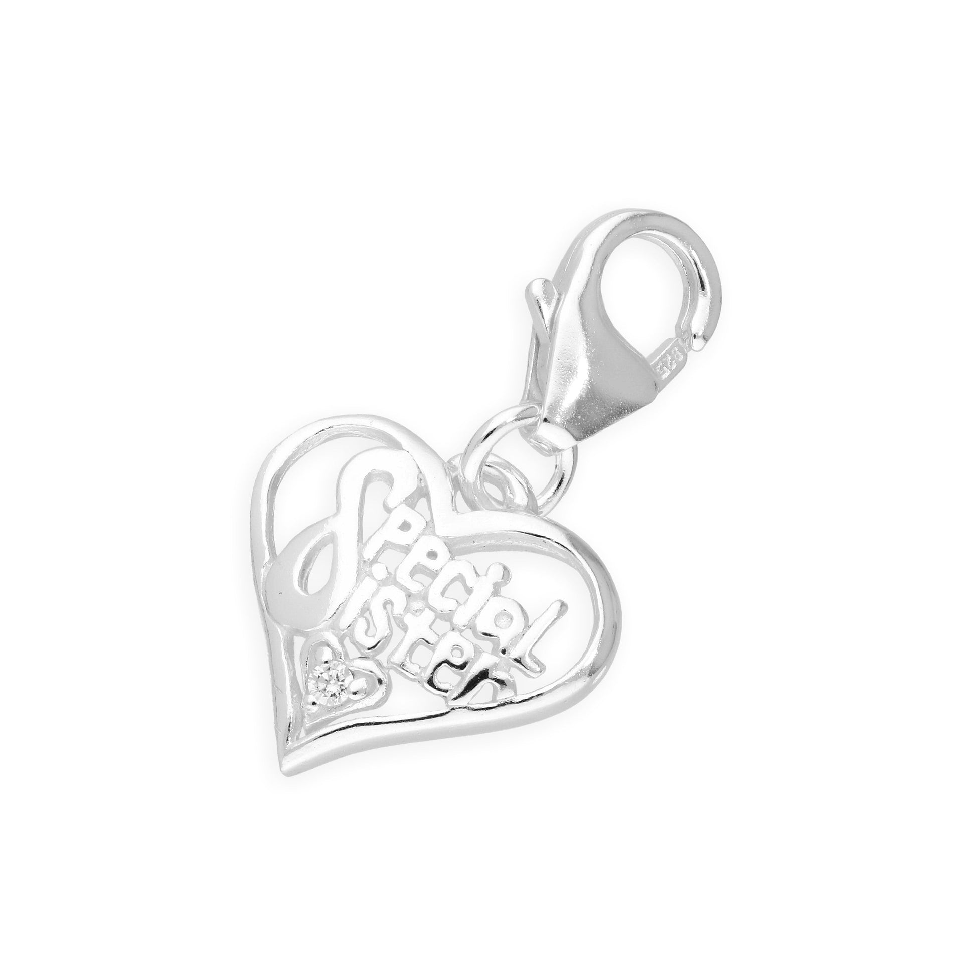 Sterling Silver and Crystal Special Sister Heart Clip on Charm