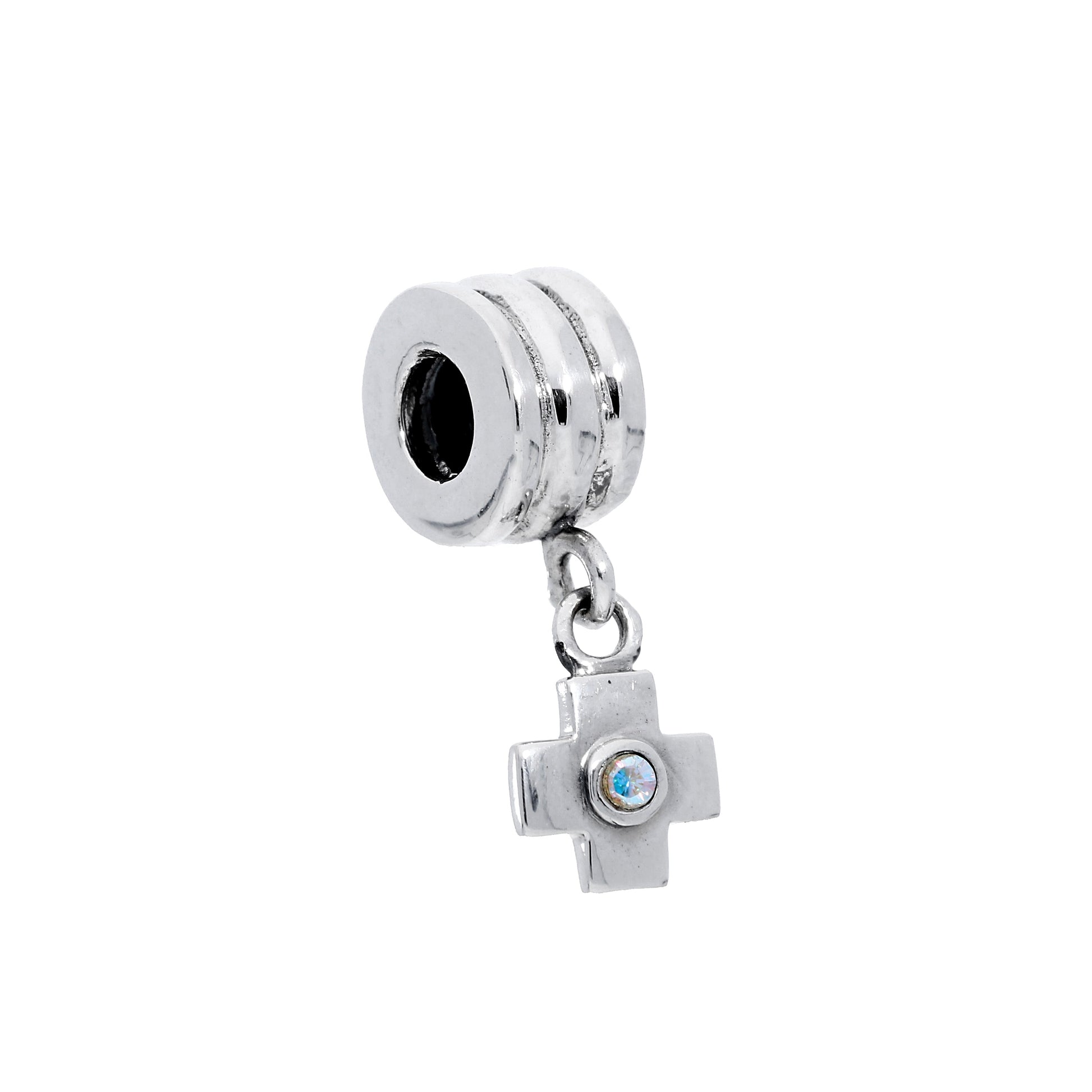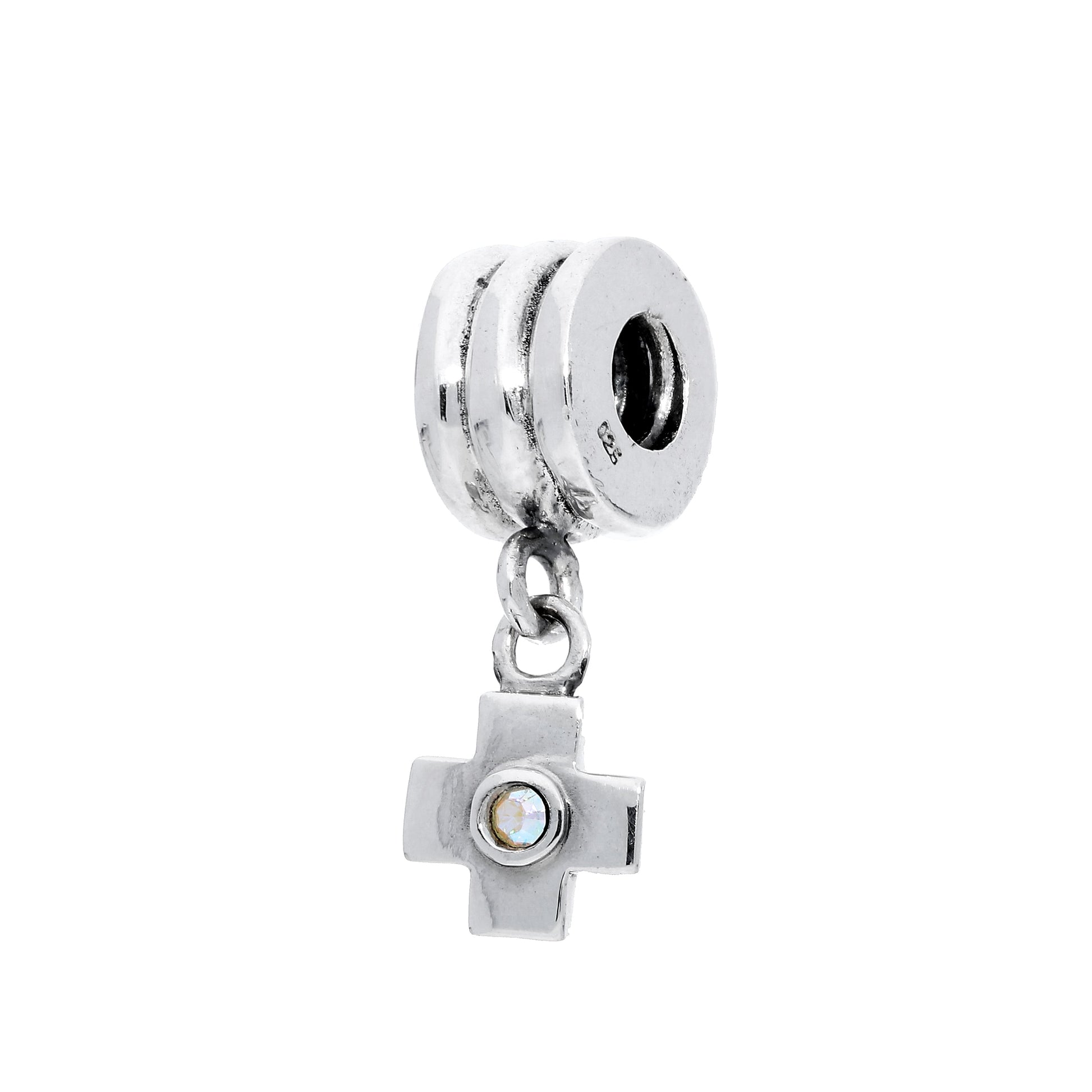 Sterling Silver & Aurora Borealis CZ Crystal Cross Hanging Bead Charm