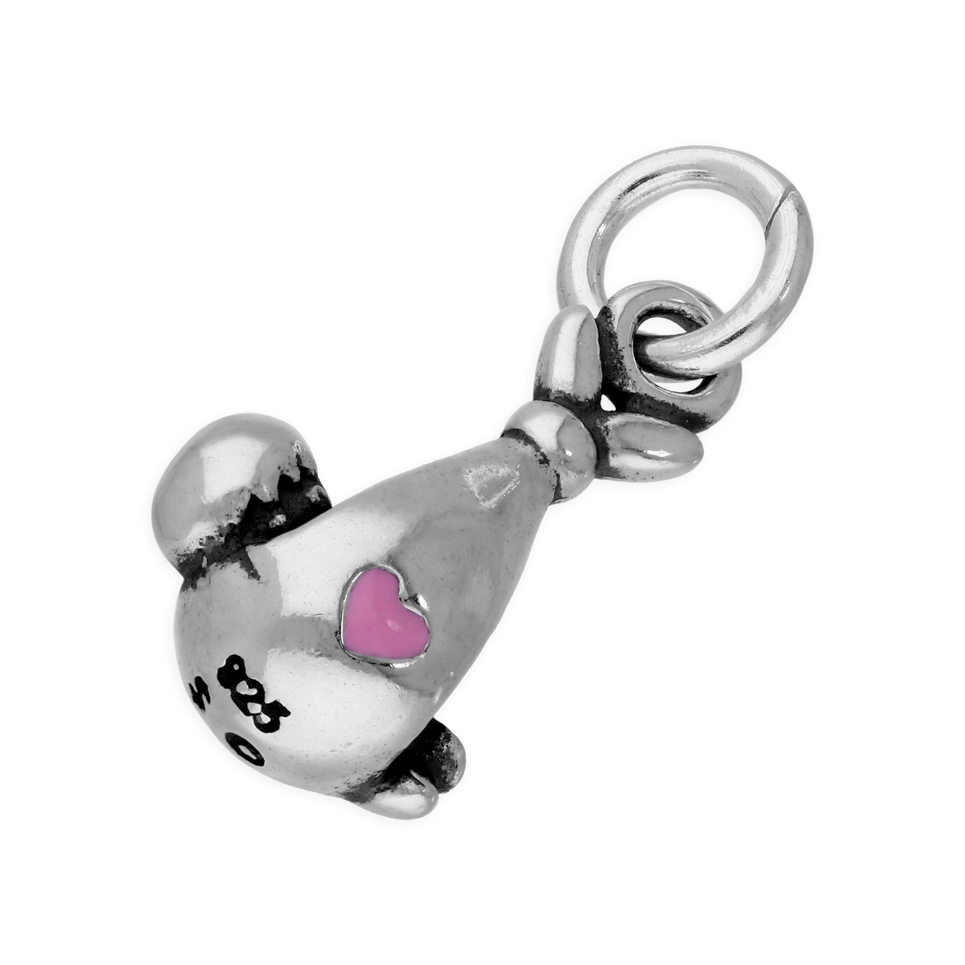 Sterling Silver Baby Girl Bundle Charm with Pink Enamel Heart