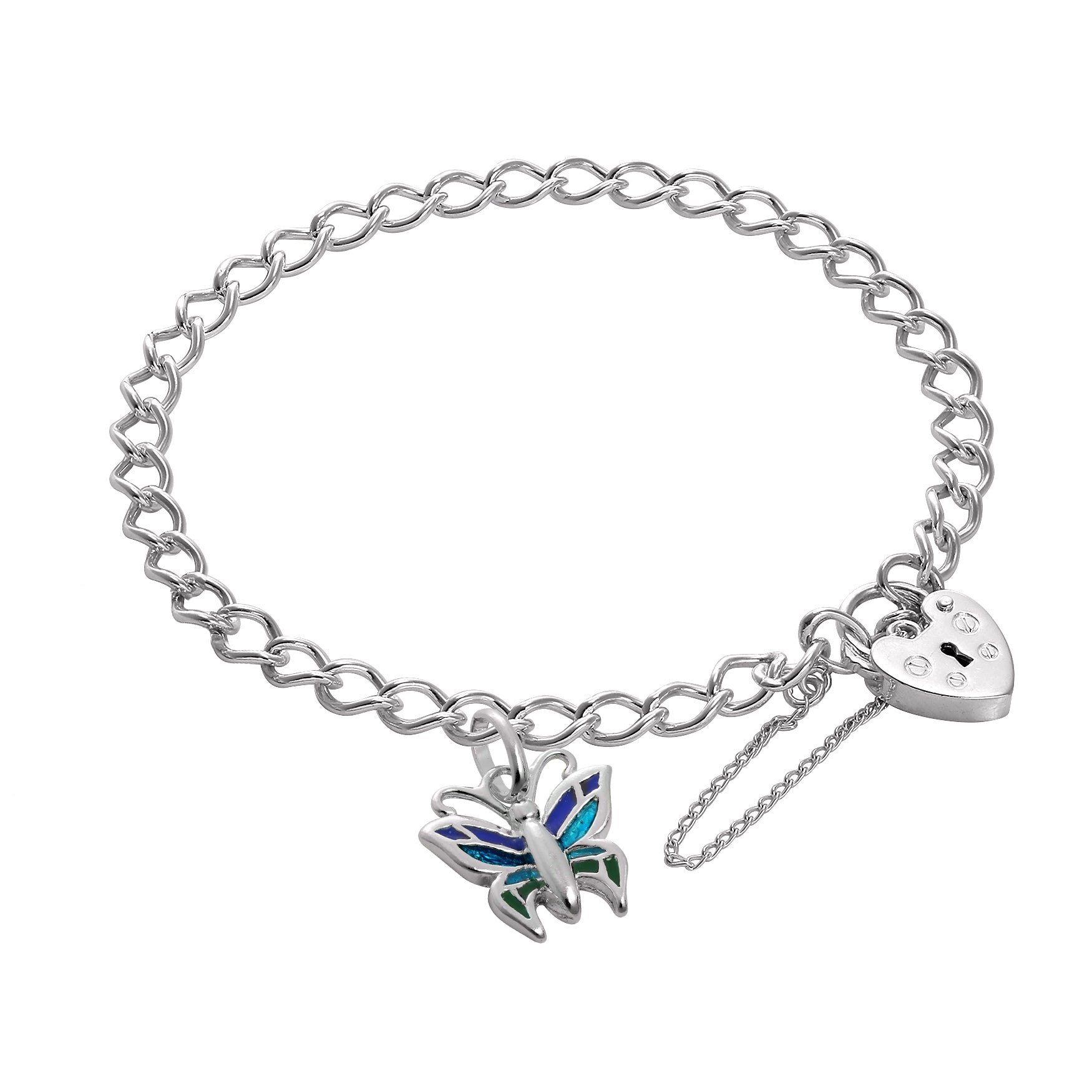 Sterling Silver Butterflies Heart Clasp Starter Bracelet