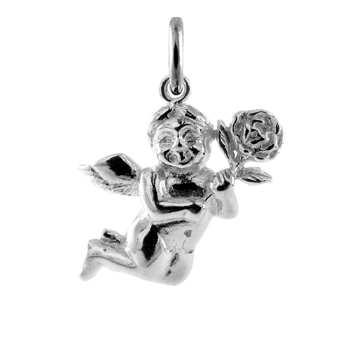 Sterling Silver Cherub with Rose Charm