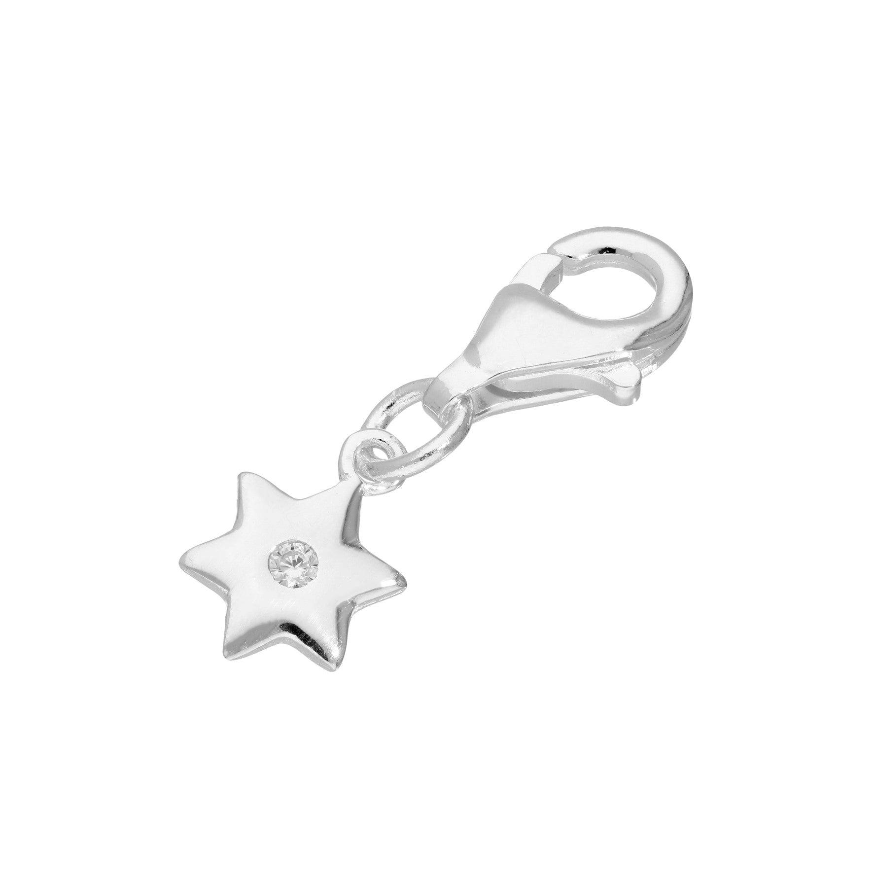 Sterling Silver & Clear CZ Crystal Star Clip on Charm