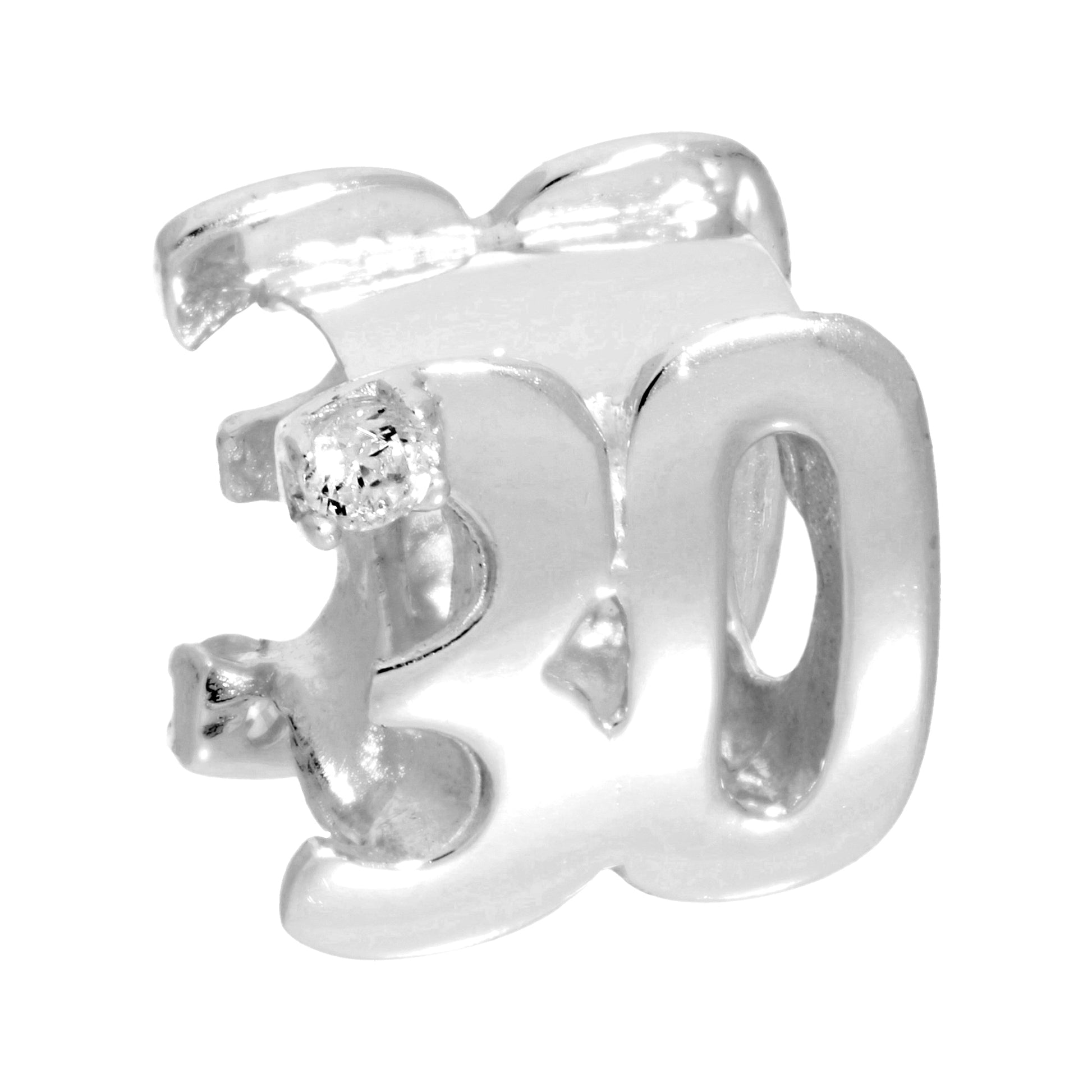 Sterling Silver & CZ Crystal Birthday Bead Charm 16th - 50th