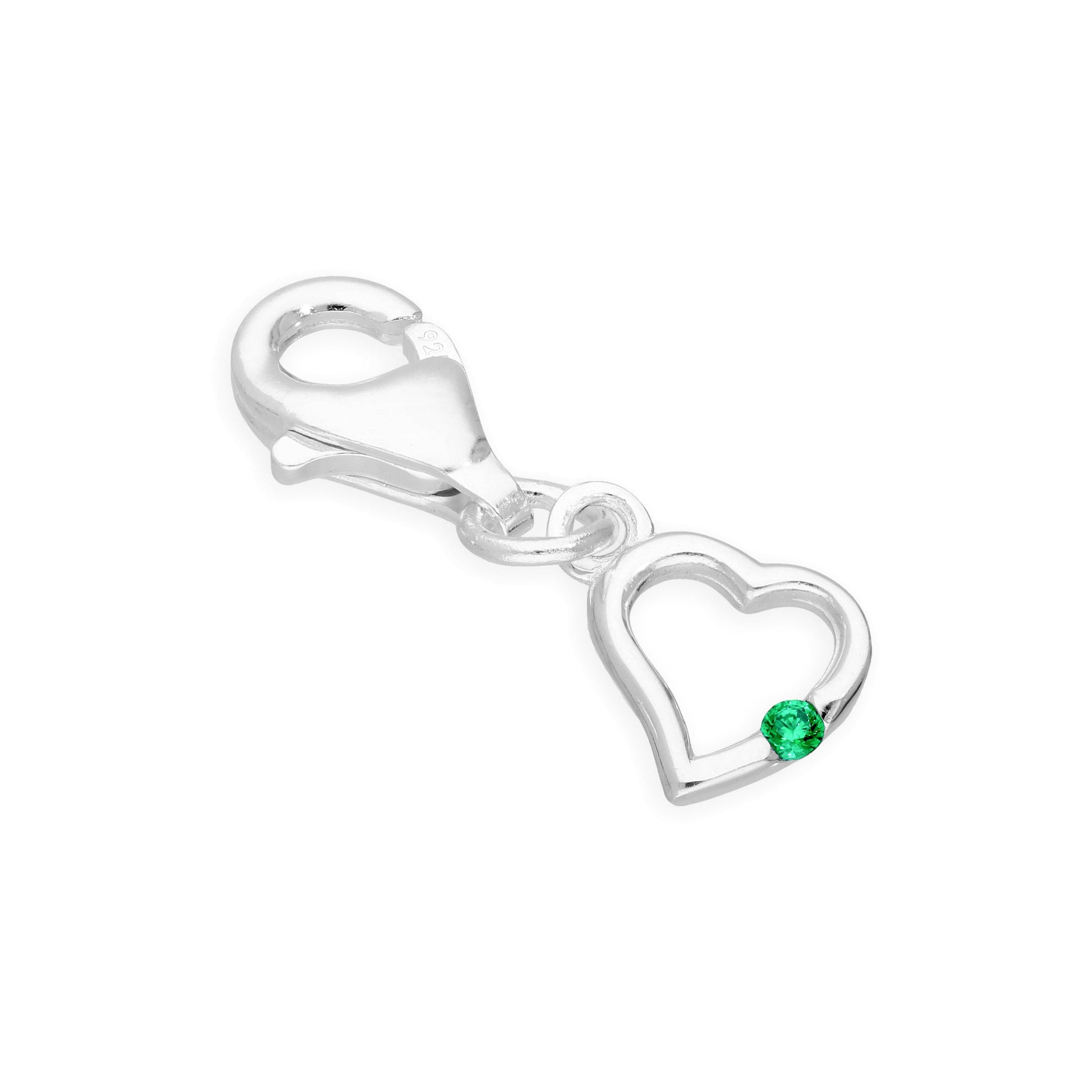 Sterling Silver & CZ Crystal Birthstone Heart Clip on Charm Birthday Love Gift