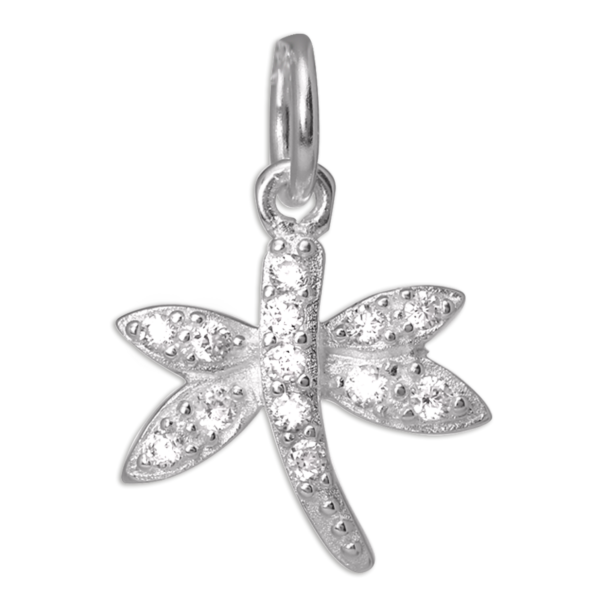 Sterling Silver CZ Crystal Encrusted Dragonfly Charm