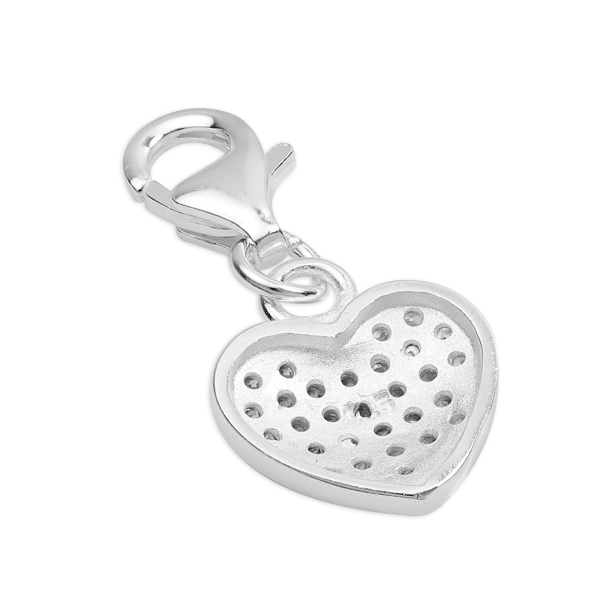 Sterling Silver CZ Crystal Encrusted Heart Clip on Charm