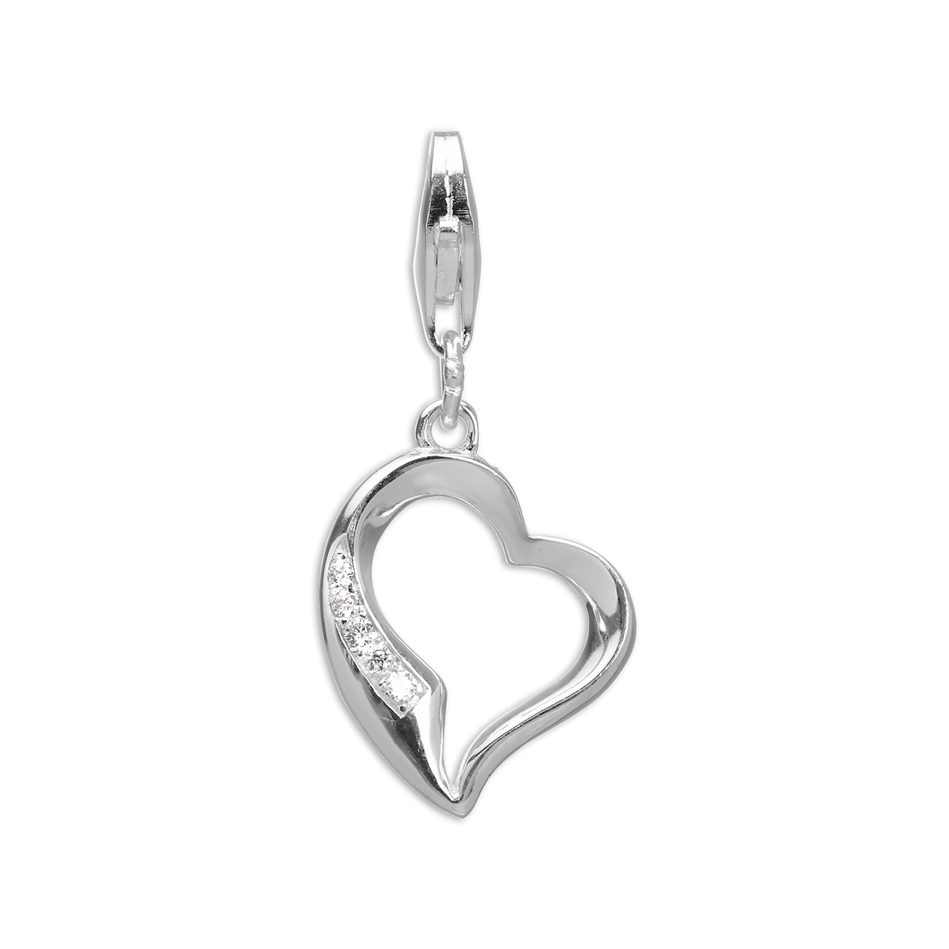 Sterling Silver & CZ Crystal Open Heart Clip on Charm