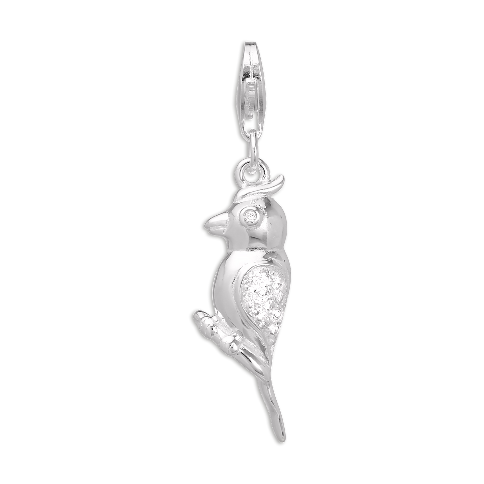 Sterling Silver & CZ Crystal Parrot Clip on Charm