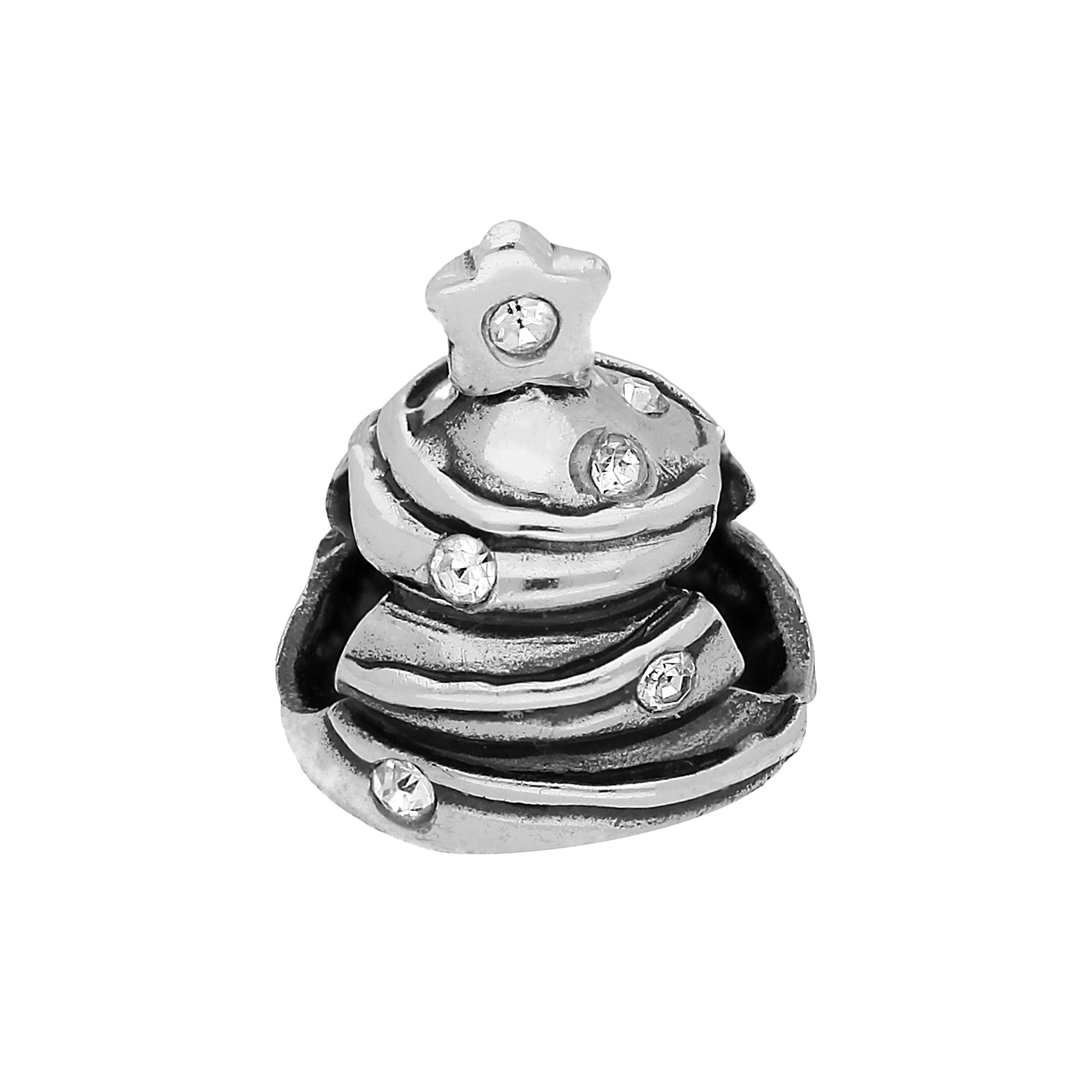 Sterling Silver & CZ Crystal Round Christmas Tree Bead Charm