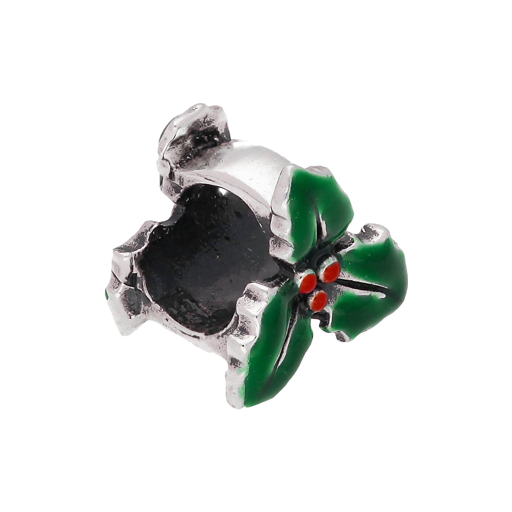 Sterling Silver Enamelled Holly Leaf Bead Charm