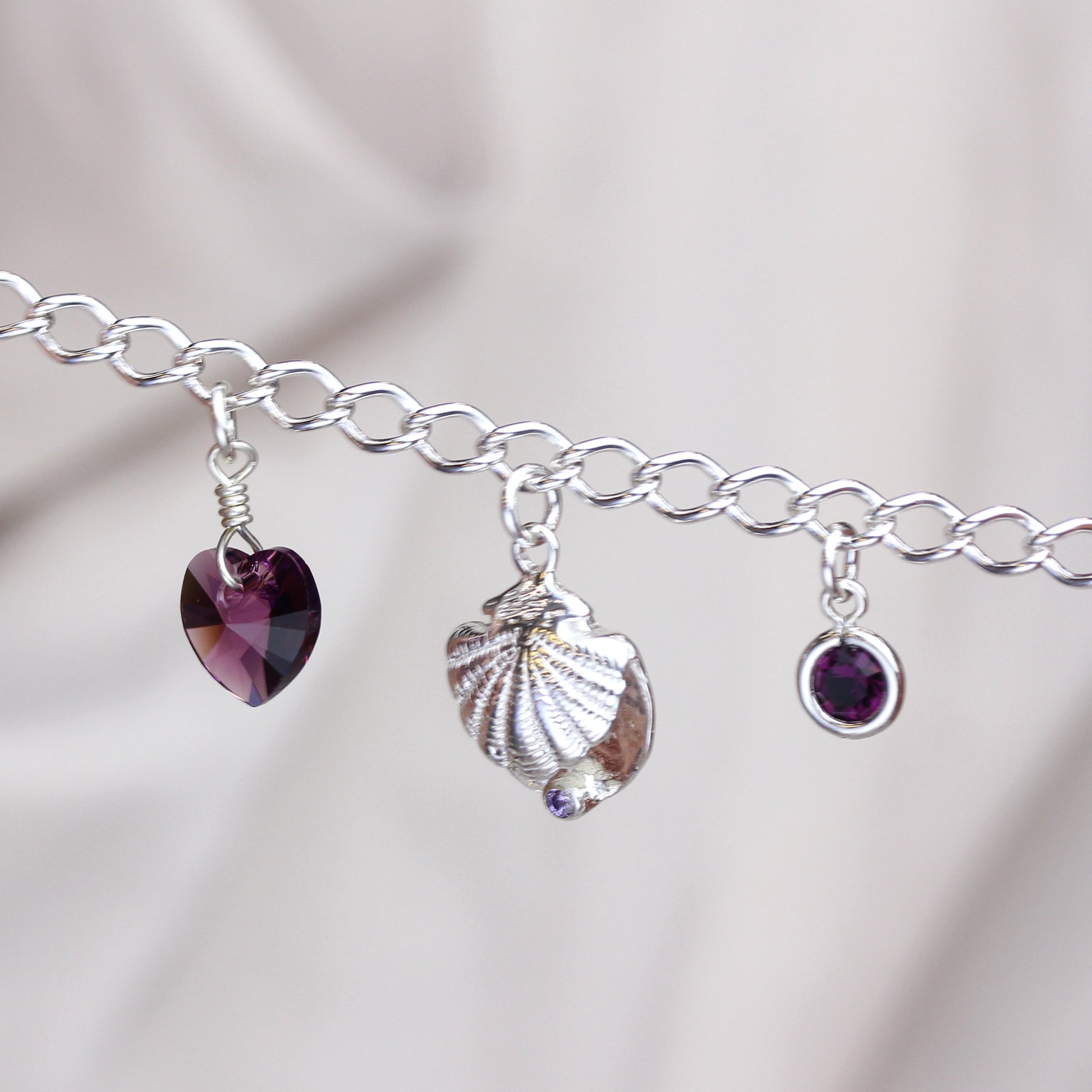 Sterling Silver February Amethyst Crystal Heart Charm