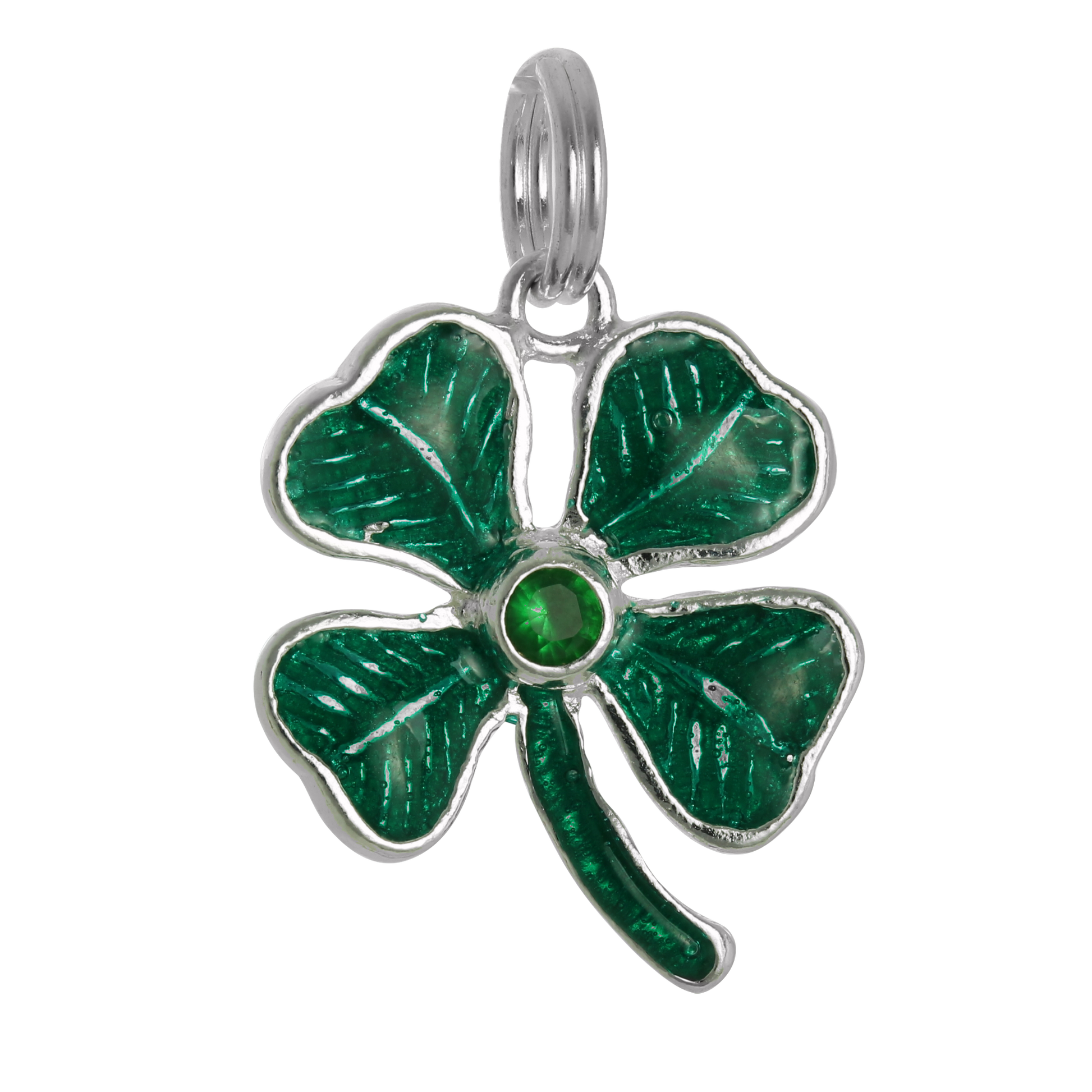 Sterling Silver & Green Enamel 4 Leaf Clover Charm