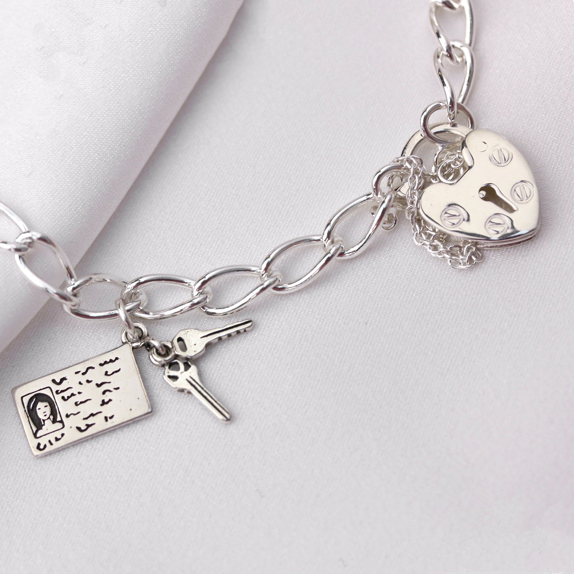 Sterling Silver Heart Clasp Charm Bracelet