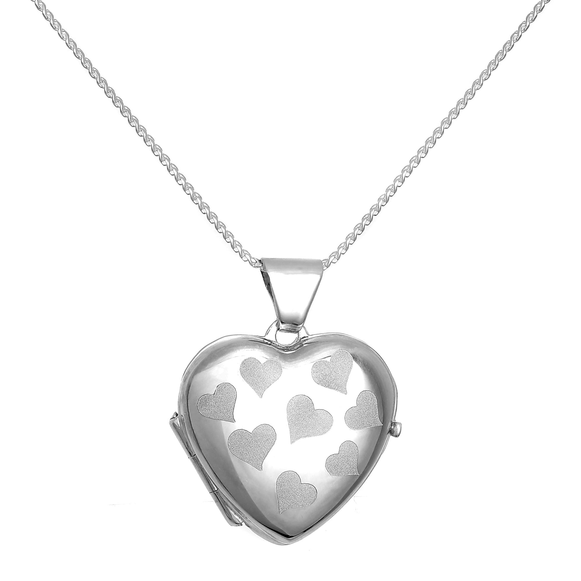Sterling Silver Heart Locket with Matt Hearts on Chain