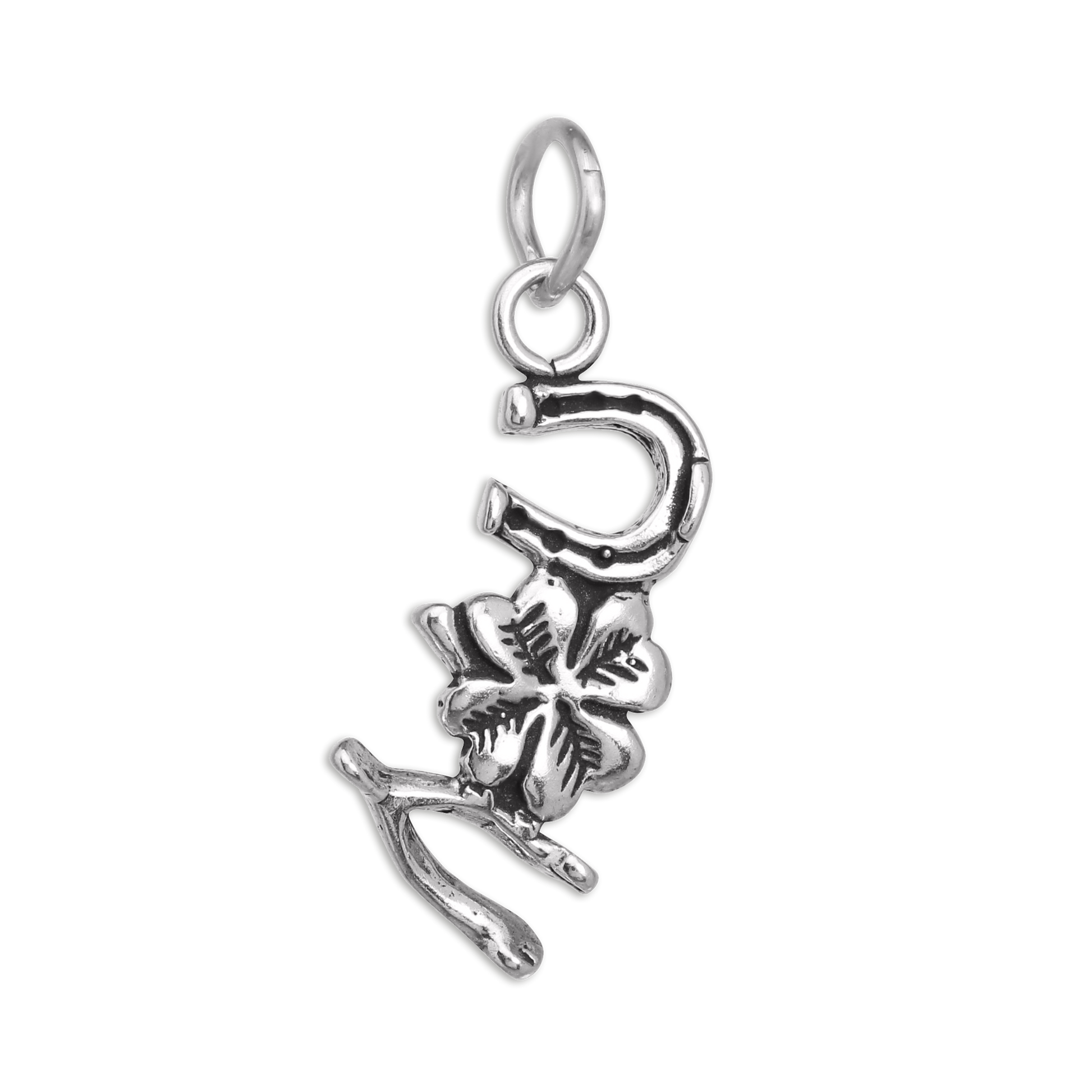 Sterling Silver Lucky Wishbone Clover & Horseshoe Charm