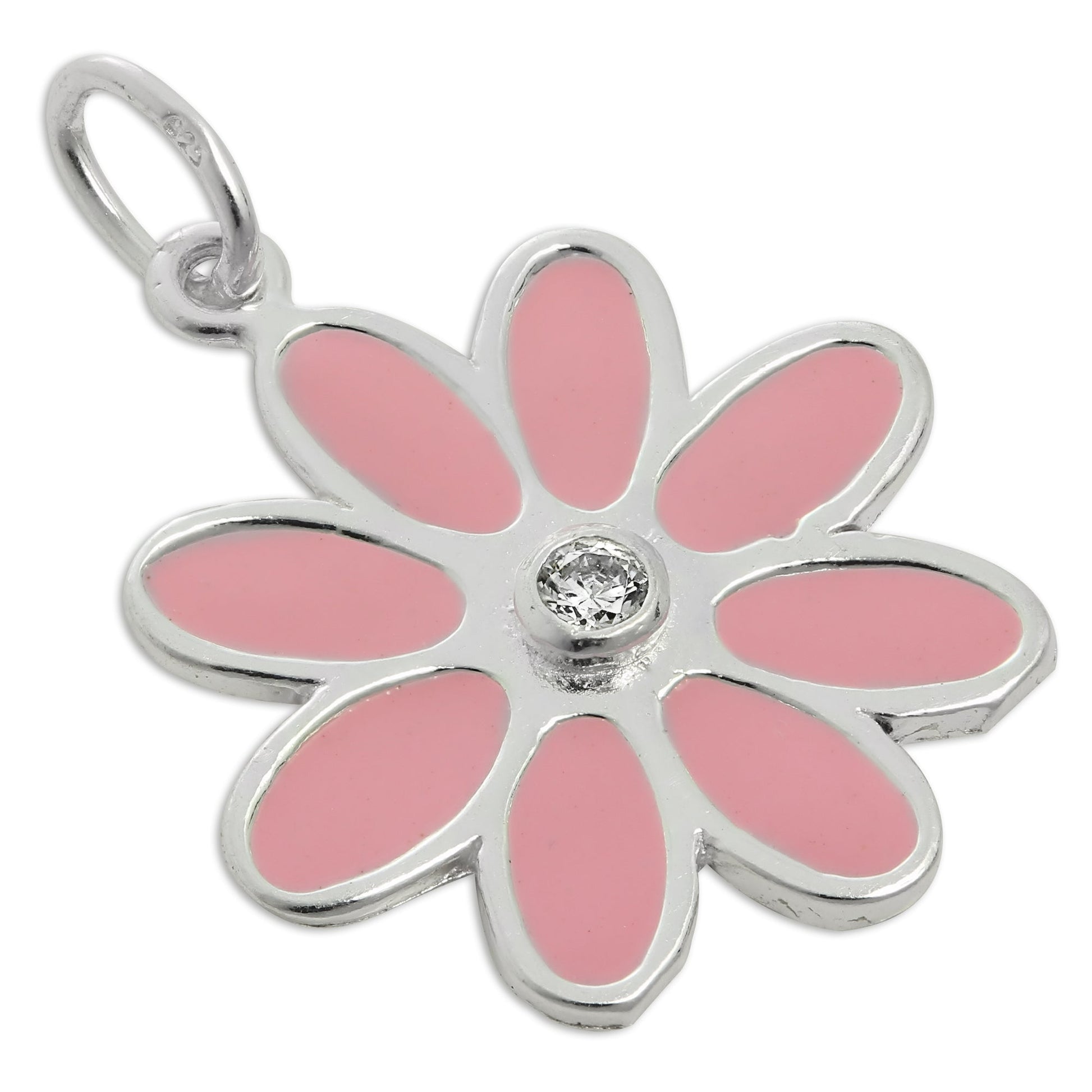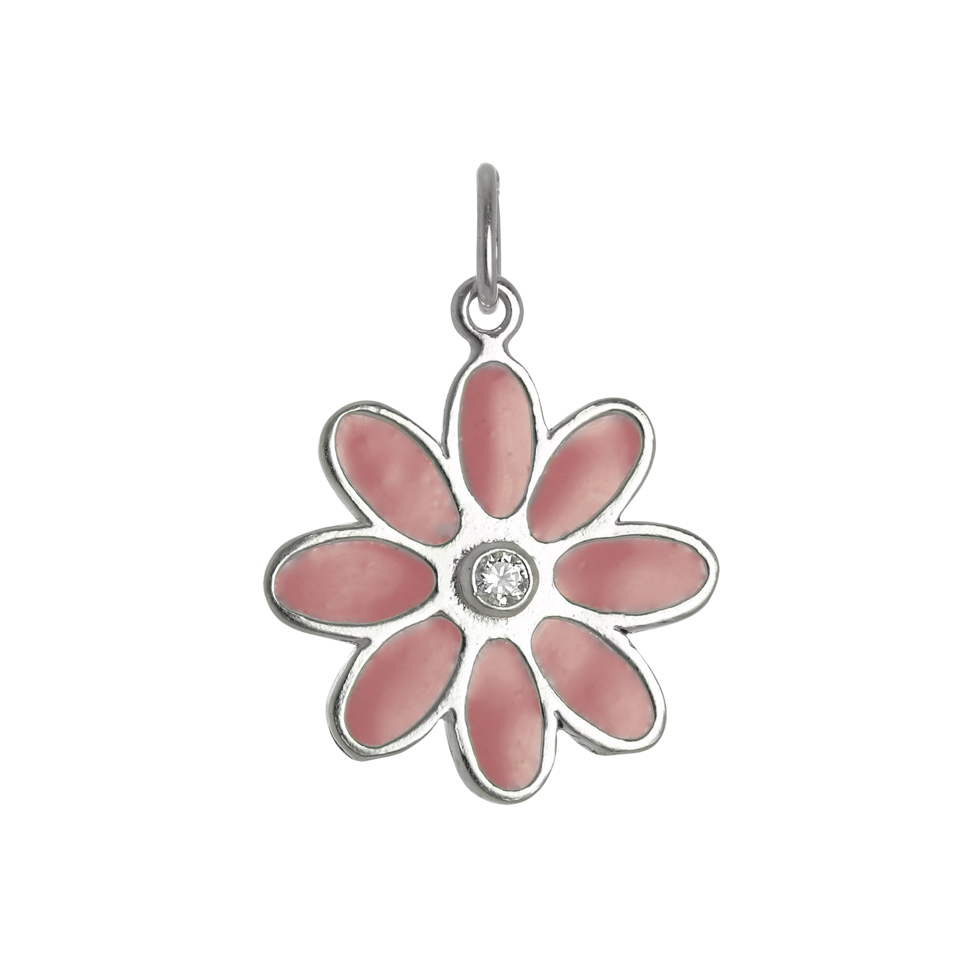 Sterling Silver Pink Enamel & CZ Crystal Flower Charm