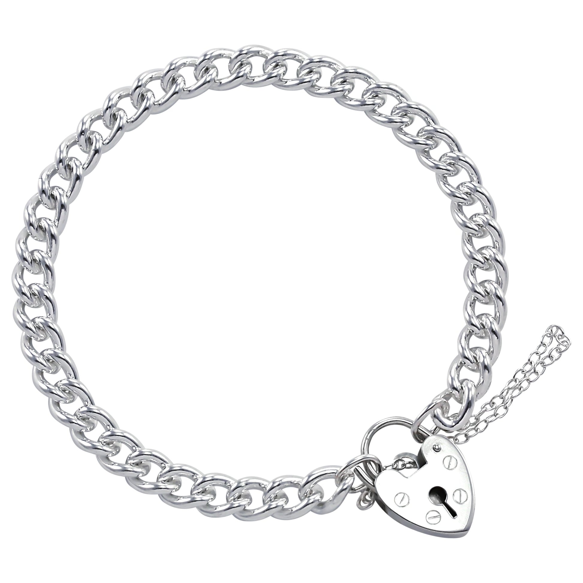 Sterling Silver Single Curb Charm Bracelet With Heart Clasp